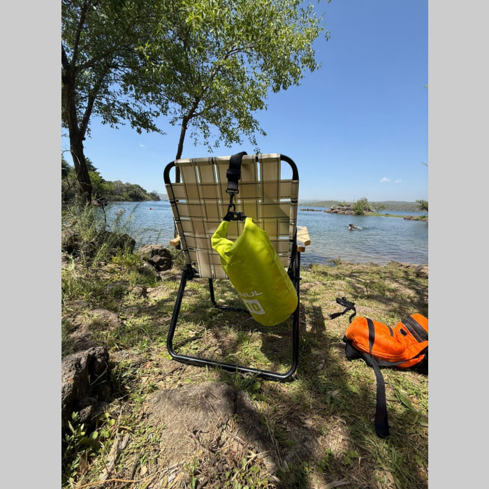 Fabricado en material impermeable de alta resistencia, con sistema de cierre enrollable que garantiza un sellado seguro incluso en contacto directo con el agua.